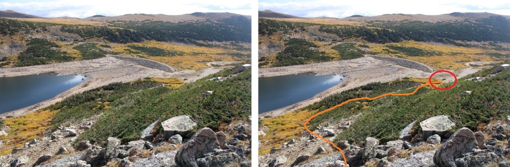 Here’s my overall route out of the basin, keeping Lake Caroline to my left this time