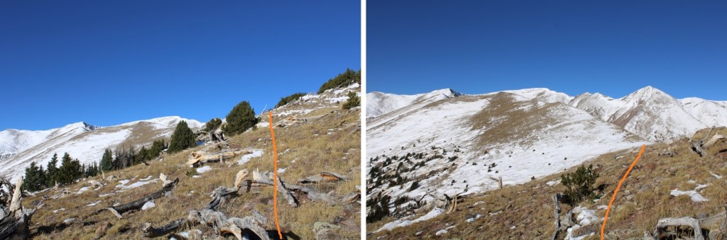 I kept heading west, following the ridge.  Just at treeline, and before topping out, I skirted the ridge to the left.