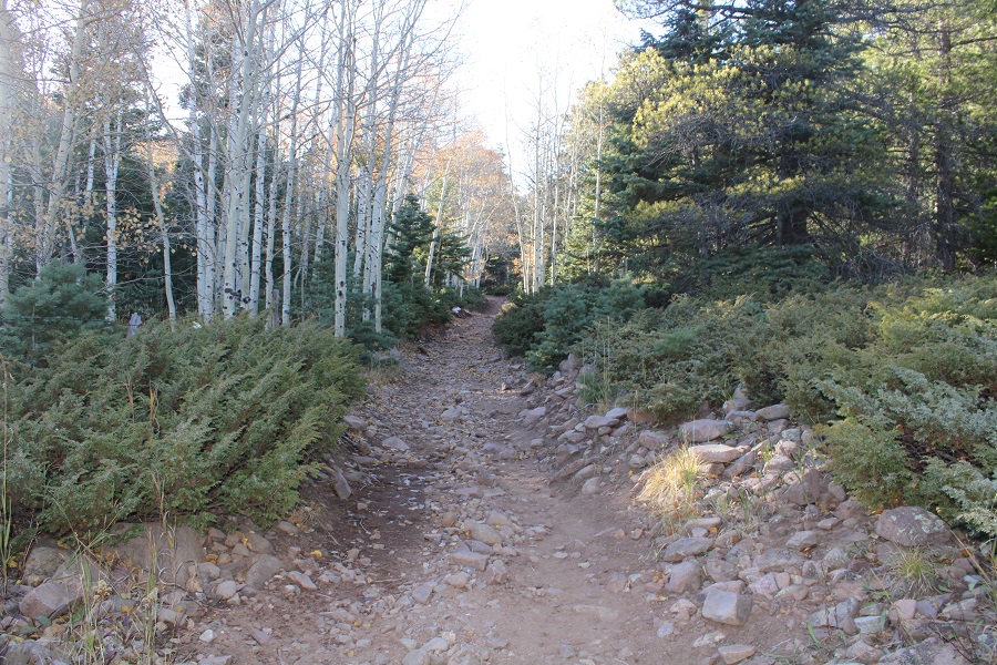 I took Trail 1349 for 3.75 miles, back to Trail 1336, and the to the Gibson Trailhead.  This is a great, class 1 trail.  The only downside are all the softball-volleyball sized rocks littering the path