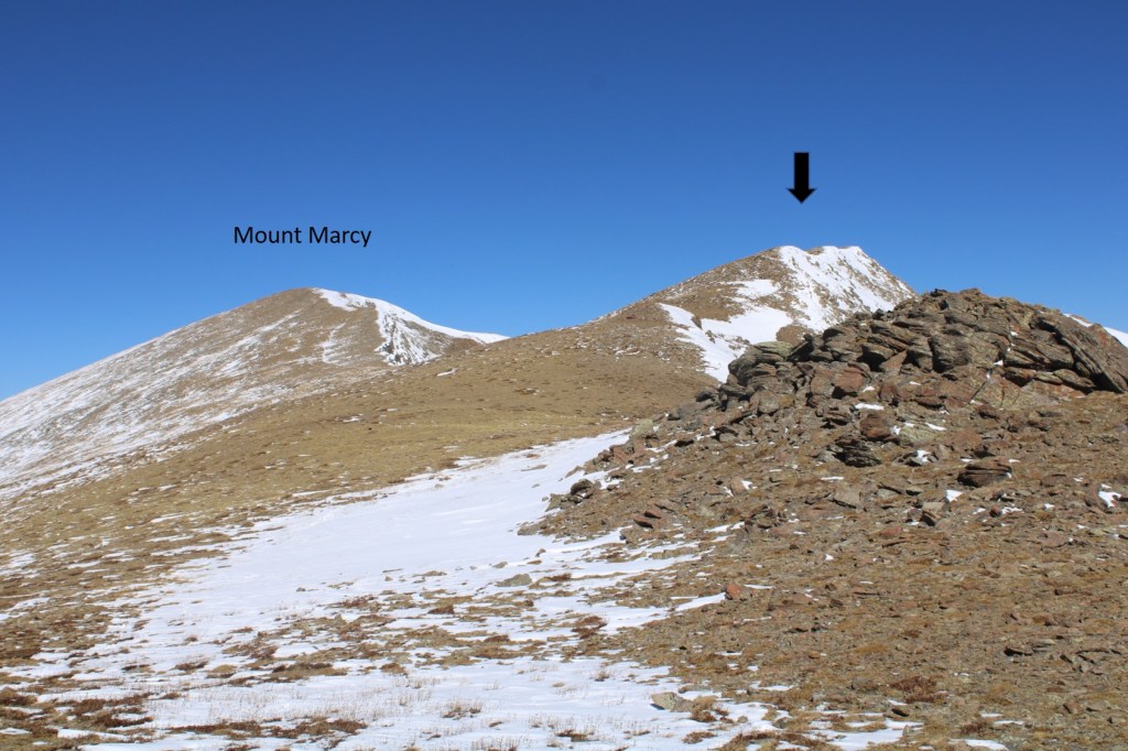 Here’s looking back at Mount Marcy.  The black arrow is how I accessed the ridge