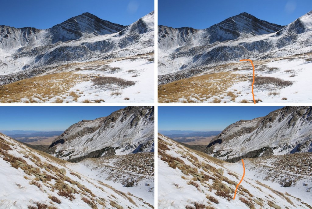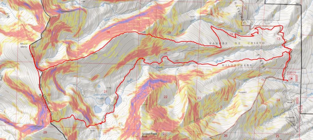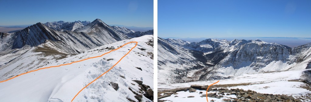 The route required me to cross/use an avalanche route/drainage area.  To navigate this, I stayed as high as possible, once crossing the drainage