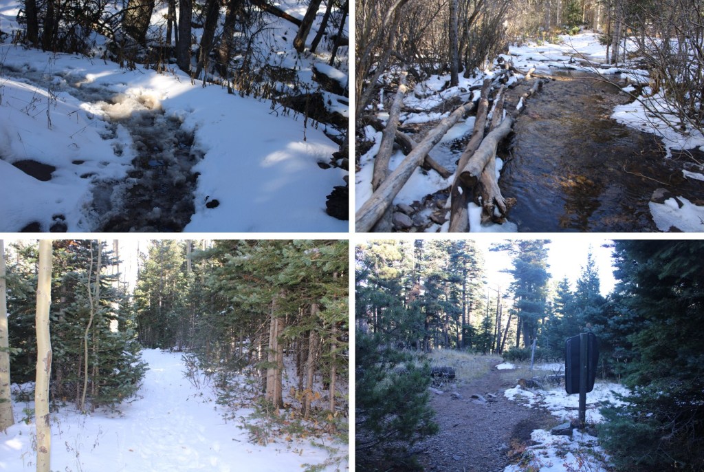 I wanted an early start for this peak, but not too early.  I knew it had snowed the past couple of days, but only a few inches:  I had no idea what to expect when it came to conditions, above or below treeline.  I got a later start than usual because I was making this a loop and wanted to get pictures on the way in of the route.  I gathered my gear and was on the trail at 5:30am.