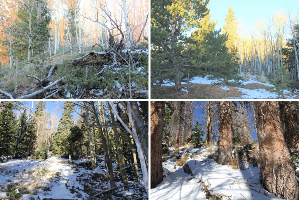 At 10350’, and after a total of 3.4 miles of hiking, the trail will stop increasing in elevation and start heading towards trail 1351.  It was here I left the trail and headed west up the ridge.  I was worried there would be a lot of downfall here, like there is when heading up towards Gibbs Peak, but the ridgeline was surprisingly manageable below treeline.