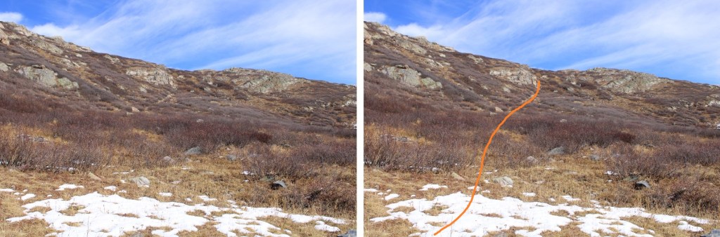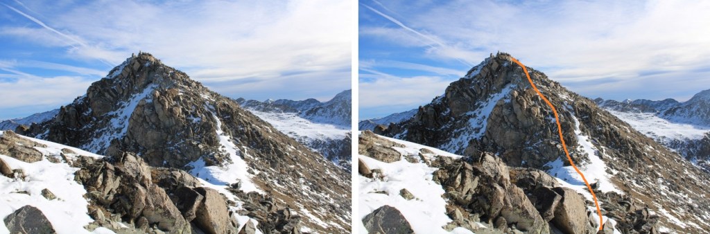 Here are some closer pictures of the route up to the Geissler West/East saddle. I went right at the only junction