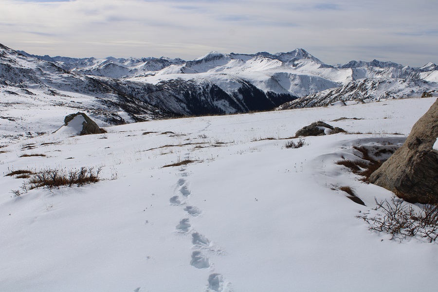 I decided to re-trace my steps back to the saddle.  This was easy, as I just followed my footprints.