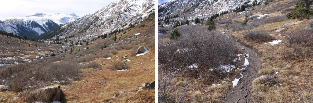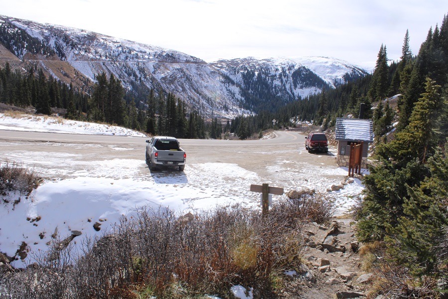 Independence Pass is still open, so I decided to try and get in a few peaks before it closes. I drove to the Independence Lake Trailhead the morning of the hike, instead of the night before: every time I drive by this trailhead at night I see porcupines (plural) underneath vehicles parked there. I wonder how many times hikers have returned to their vehicles to find chewed wires at this trailhead? This morning I was hoping it was cold enough, and late enough where they wouldn’t be out. There weren’t any other vehicles in the parking area, and no porcupines in sight.
