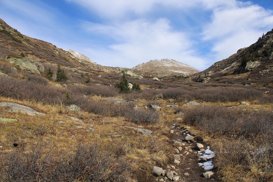 As I neared the back of the basin, I ascended by hugging a rock outcropping and drainage