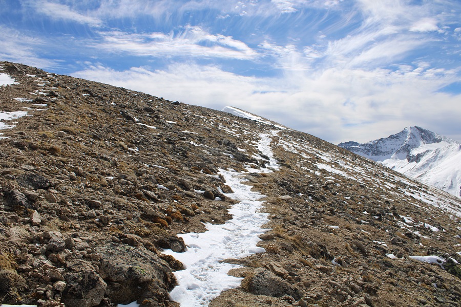 I headed towards the ridge, following an obvious route, which I am sure is class 1 in the summer.