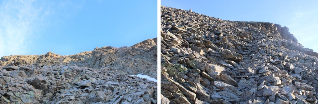 In order to get to the saddle, I headed straight south, down these scree/loose-rock filled gullies