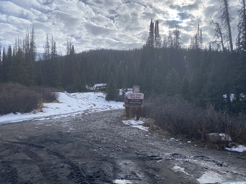 This was my first time at Hancock Ghost Town. There wasn’t much to it… but there was good parking and the 4WD road looked doable in a 2WD, even in snow. There was a lot of ice/snow on the road, but that was to be expected for this time of year. There was an abandoned RV parked with “No Trespassing” signs just before the parking area. I’m sure the signs were more to protect the mining claim behind the RV than the RV itself, which was missing several windows and looked occupied by wildlife. Due to the ice and snow, it was also muddy, so I decided not to park at the Alpine Tunnel Trailhead, but at the parking area just before the bridge, where there was less mud.
