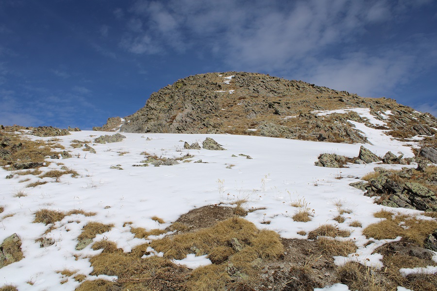 Topping out of the ridge there was some snow to deal with, but a cairn leading the way