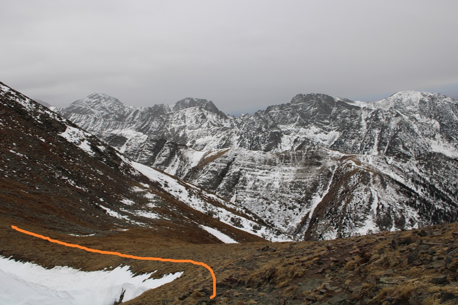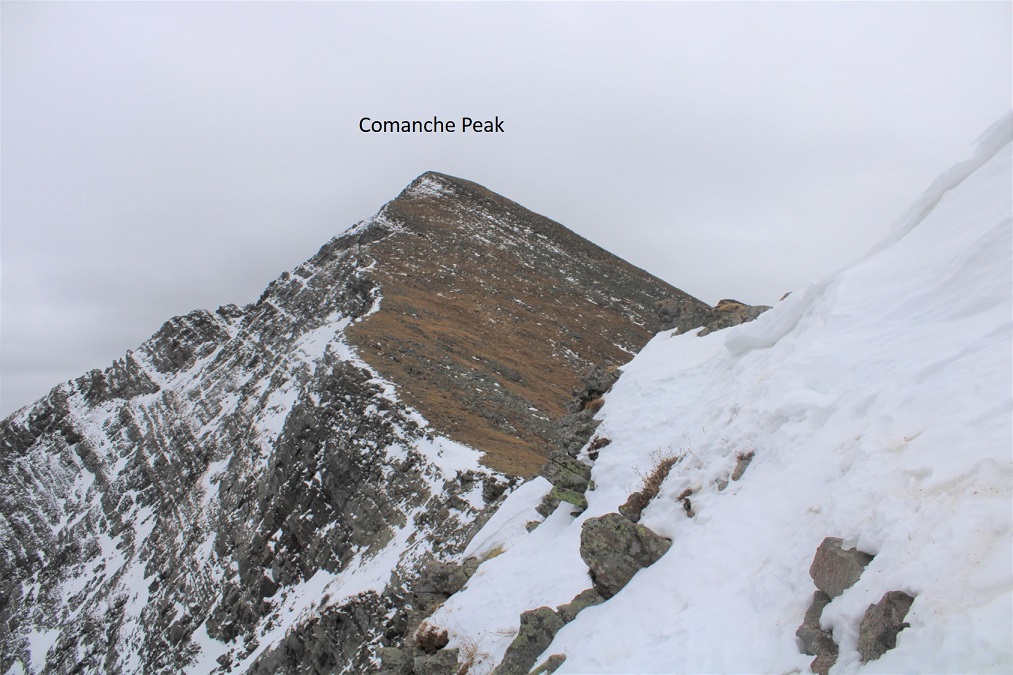 As I was hiking up the ridge towards Comanche Peak the wind picked up, and it started snowing. I figured I’d get a picture of Spring and Venable before the snow moved in. In less than 10 minutes, I could no longer see these peaks.