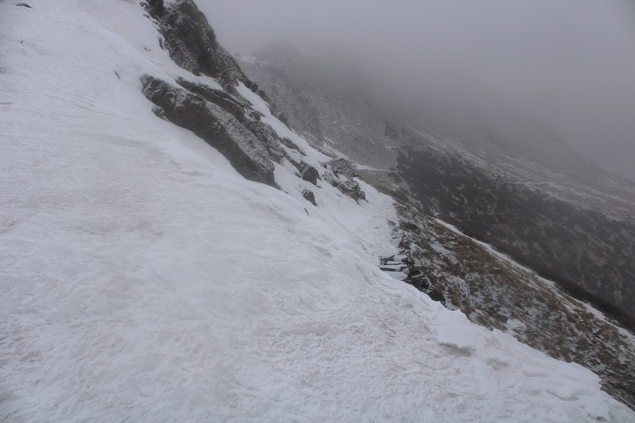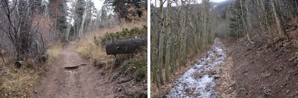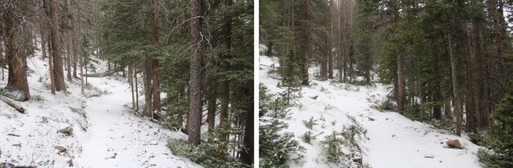 The hike to the saddle continued to be class 1, but what little snow there was had accumulated directly on the trail. On the positive side, the trail was easy to locate!