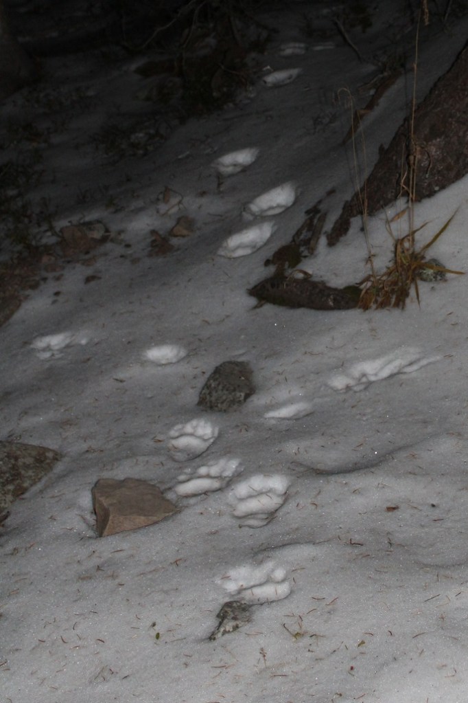 It continued to snow the entire trek out, but the trail was easy to follow. A nice layer of snow started to build up on my camera, gloves, eyelashes, backpack, etc. as I hiked out.