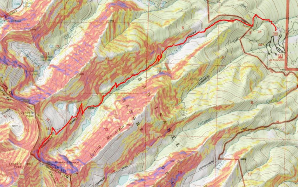 On my way out I made plans to hike Venable and Spring from the Comanche Trail the next morning. Added bonus: I didn’t have to drive to another trailhead, since the Venable and Comanche Trailheads share a parking lot. I made it back to my truck at 12:30pm, which gave me plenty of time to read, drink whiskey, talk to hunters, and get some rest before tomorrow’s attempt.