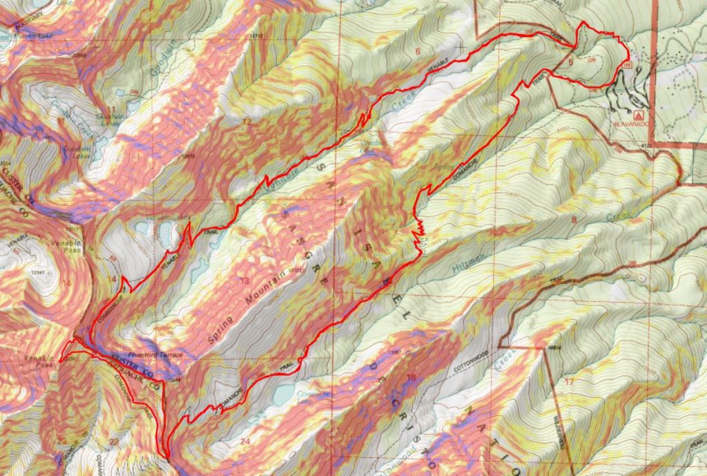 Just for reference, I was able to summit this peak via the Comanche trail the next day. Here’s what the pass looked like from above