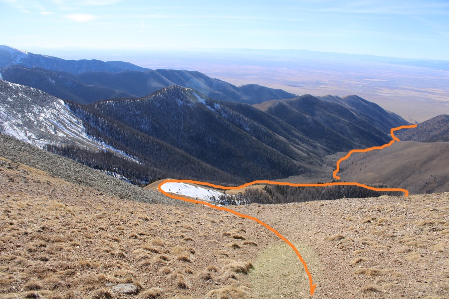 I turned and headed back to the 13123/Thirsty Peak saddle