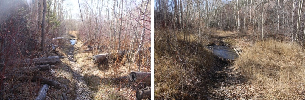 Even though I wrote it on the topo map, I forgot them: My stream crossing shoes.   Creek crossings.  Have I mentioned them?  I stopped counting at 10 on this trail.  Good news; they’re all easily crossed.  Here’s a visual…