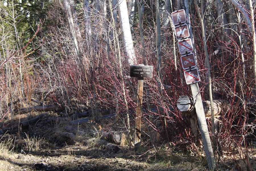 The correct trail starts at the Hot Springs Trailhead.  There are two different trails that originate from this trailhead.  I went right, following Garner Creek Trail 752.