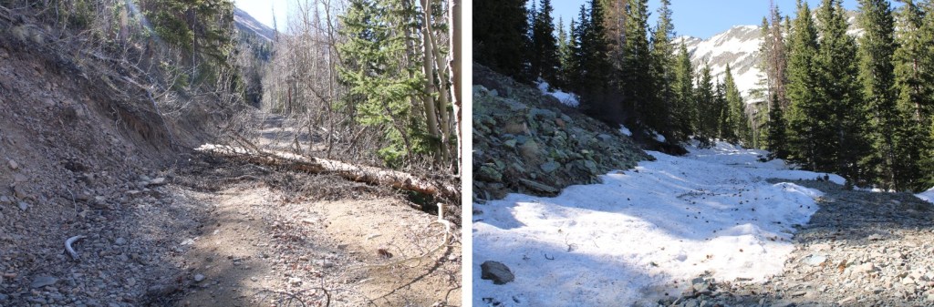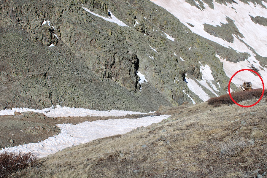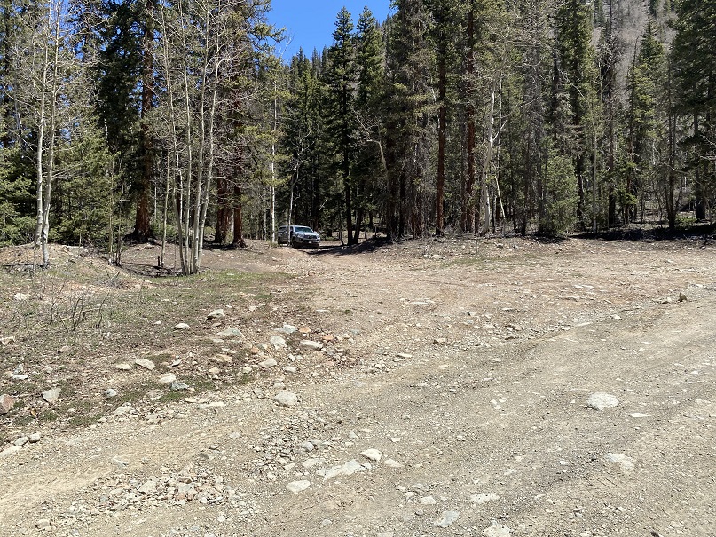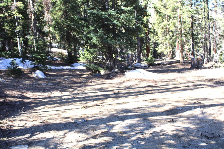 Moose scat. There was tons of it, but none looked fresh. I saw it around my campsite, and all along the road. I passed the campsite at 10900’ after hiking for 1.5 miles. This was the only place to park/turn around/pass another vehicle from where I parked my truck. (There’s a fire ring behind the snow at this site).