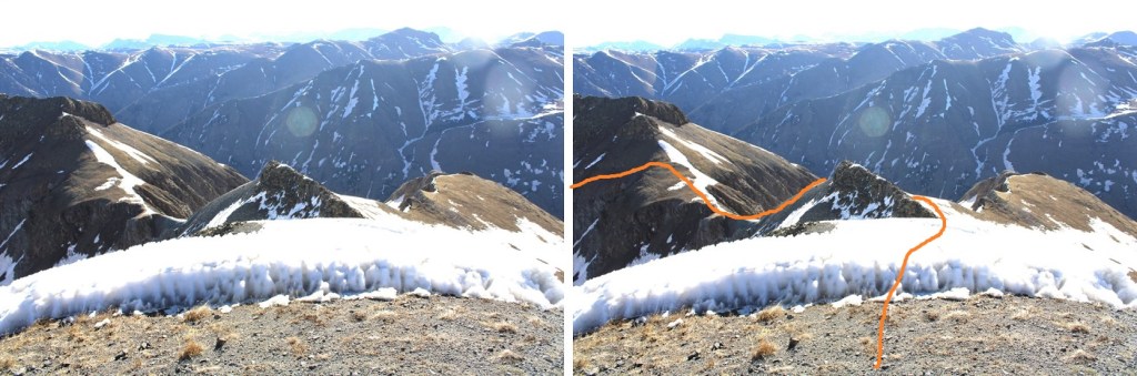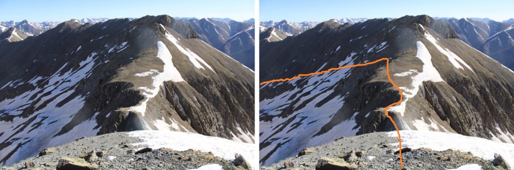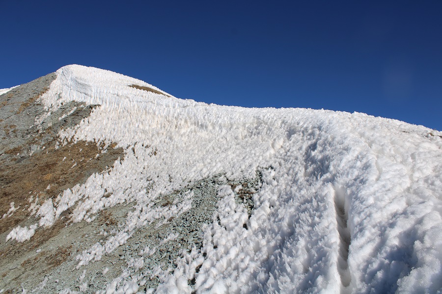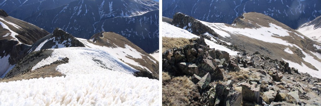 The snow was quickly softening up, so I didn’t stay long. I re-traced my steps back to the saddle.
