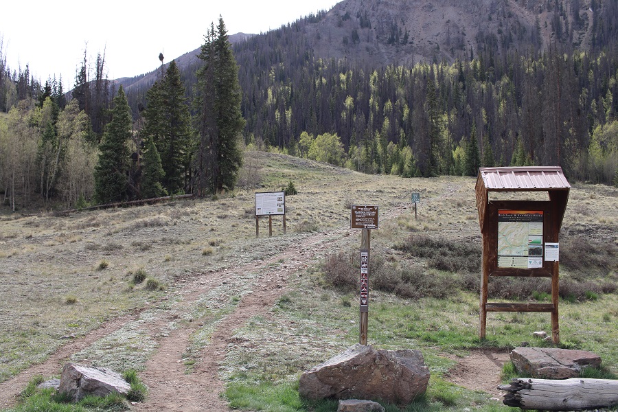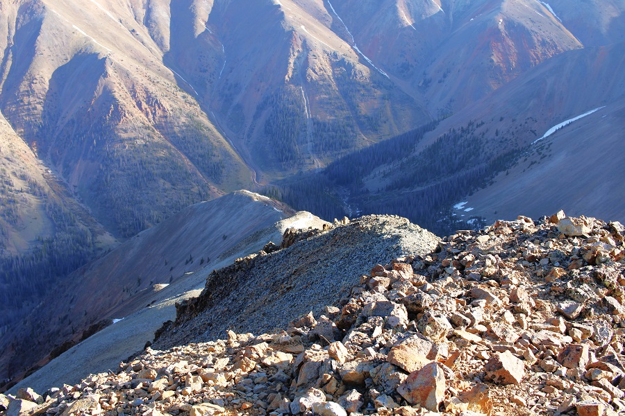 Normally you’d start this hike from the Silver Creek/Grizzly Gulch trailhead, the same one as used for Redcloud and Sunshine Peaks, but it’s Memorial Day weekend, and I knew that trailhead would be crowded. Also, I’ve had porcupines visit me there in the middle of the night, interested in the wires underneath my truck. Instead, I parked a little over half a mile further up the road, near Cooper Creek. Not only did I have the site to myself, but I got to hear the creek rushing by as I slept.