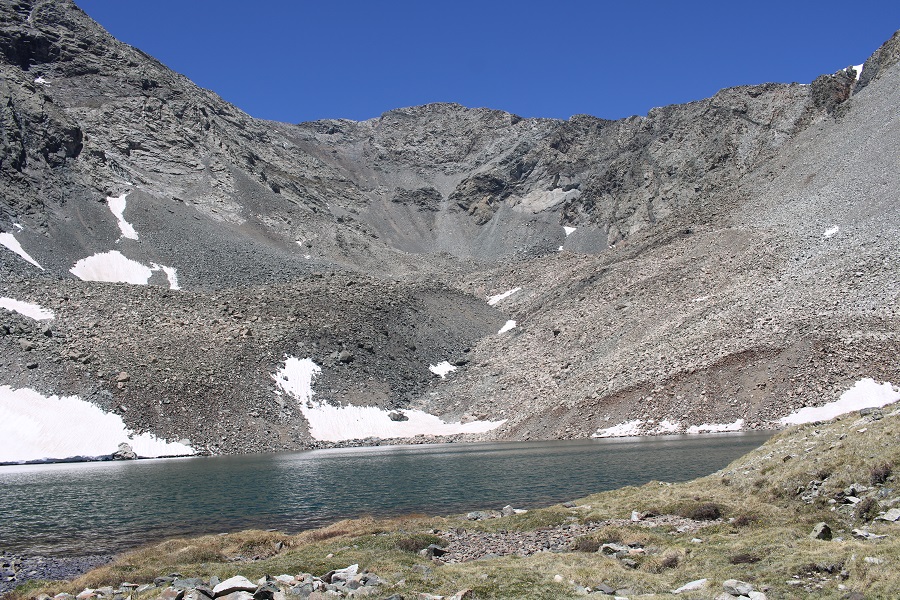 And then scree surfed back to Lily Lake. Once again, this is very loose scree, and I wore microspikes. I consistently had 6 inches of scree sliding beneath me, and as long as I kept up with it, I kept a good pace.