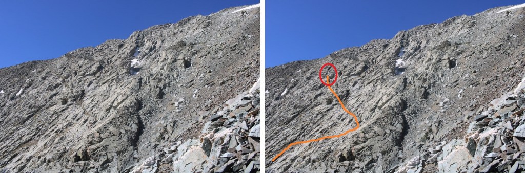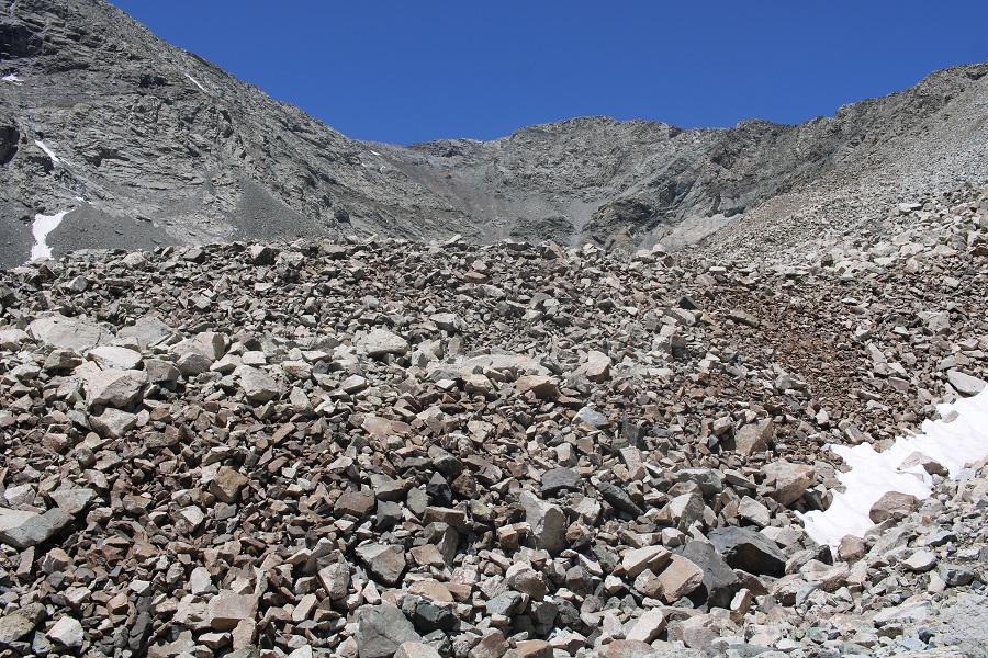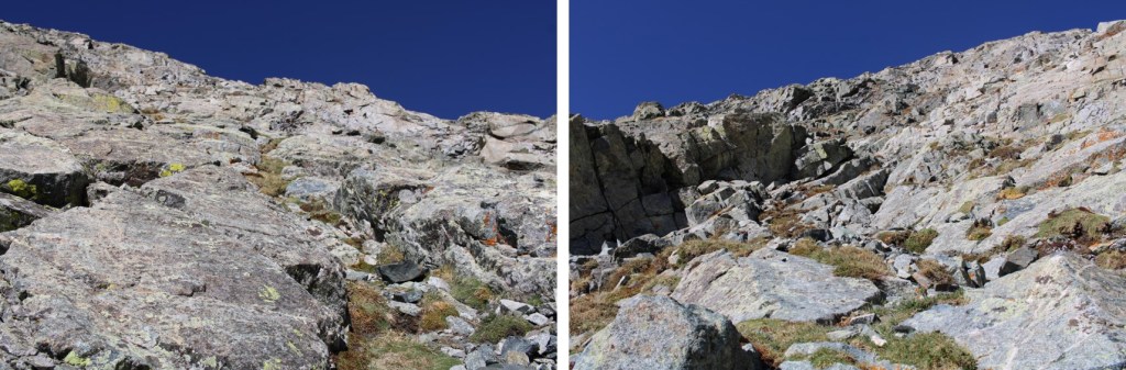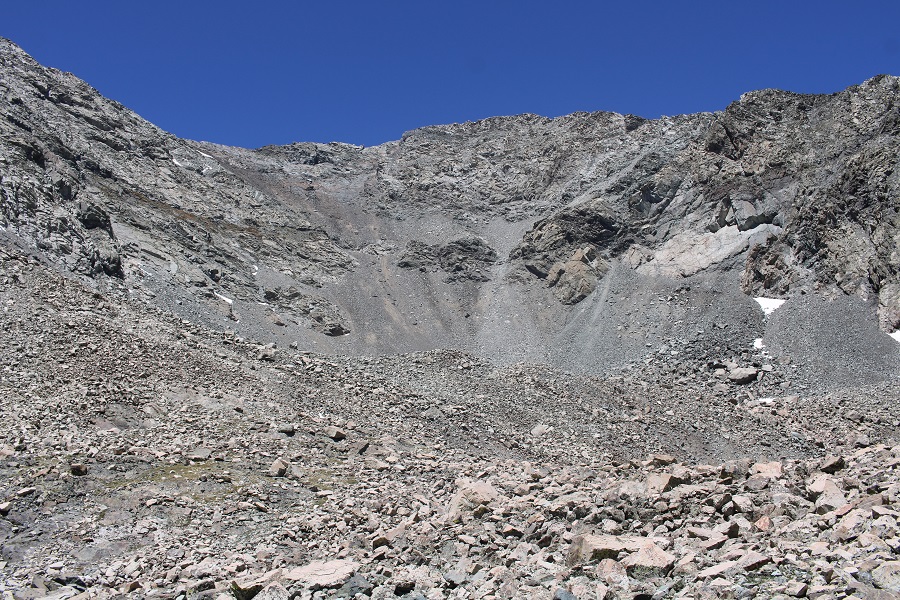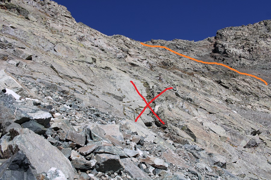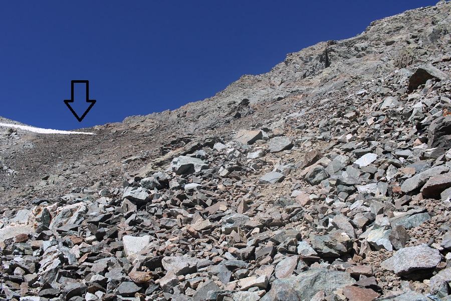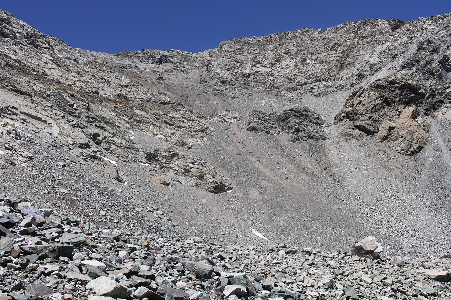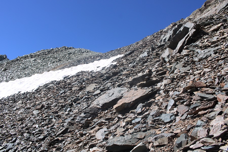 I aimed for the 13654/13656 saddle. Once again, slippery scree, but manageable