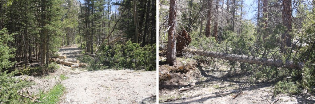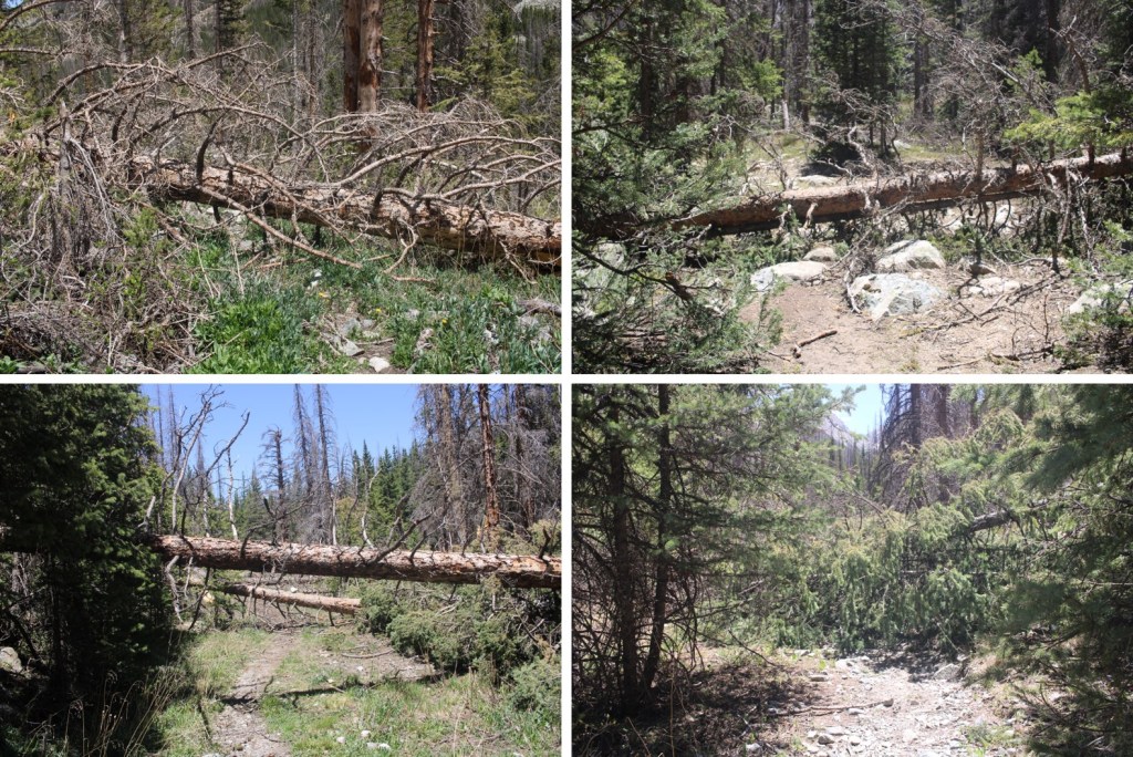 I was on the trail at 4:30am, and followed the 4WD road to the Lily Lake Trailhead. Crews have done a great job clearing downed trees, but there were very few places to pass other vehicles, and honestly, there are still a lot of trees to be cleared.