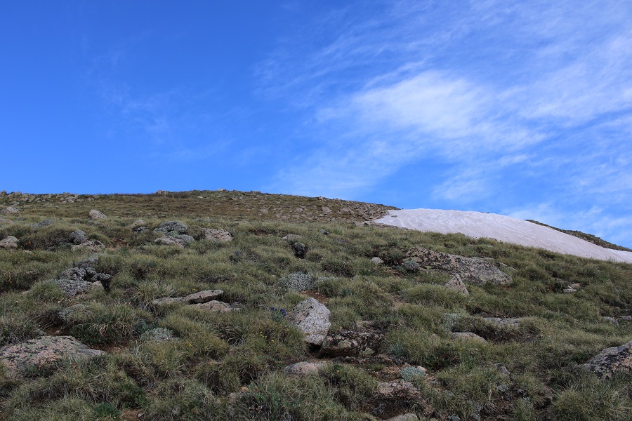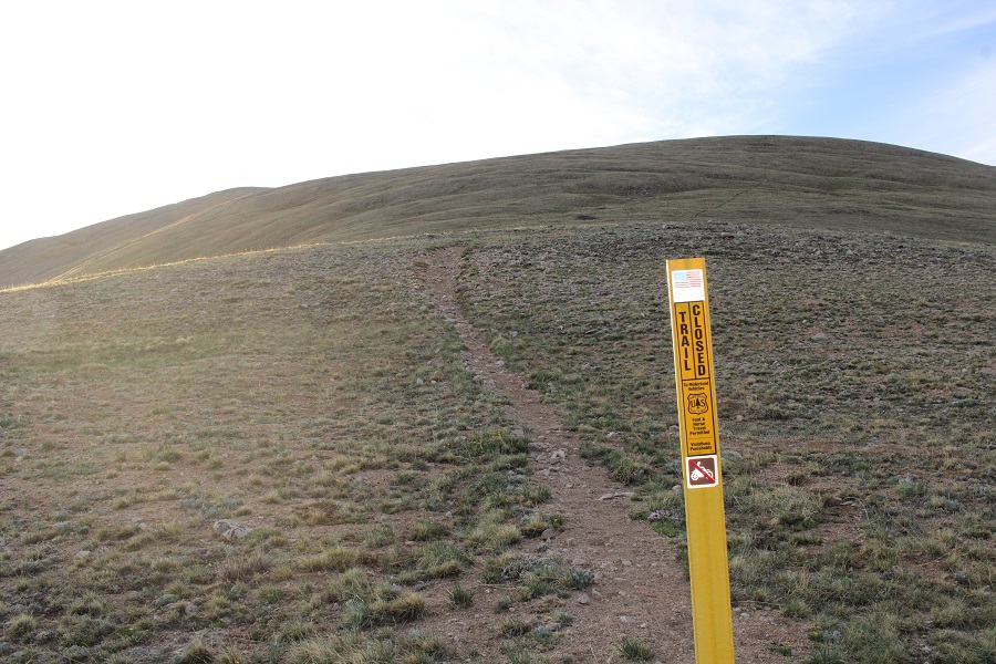 Once at treeline I turned left and headed east towards 13078. This was a straightforward tundra walk, and there was even a faint trail most of the way. Oh, and the sign says trail closed to motorcycles… hiking is ok.