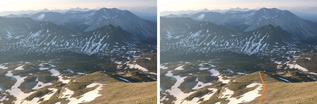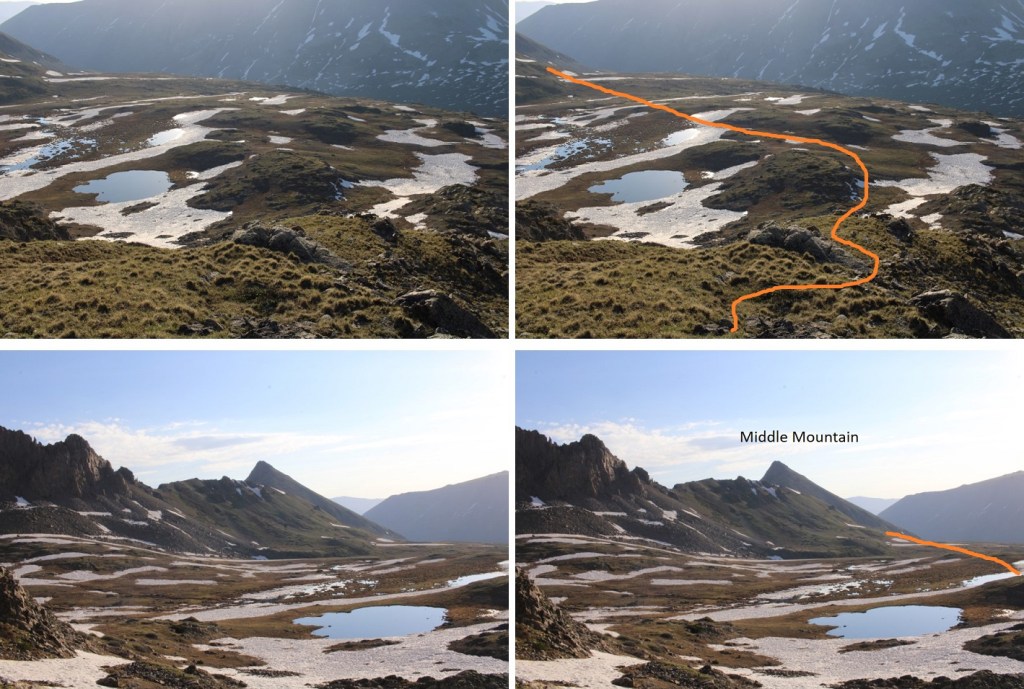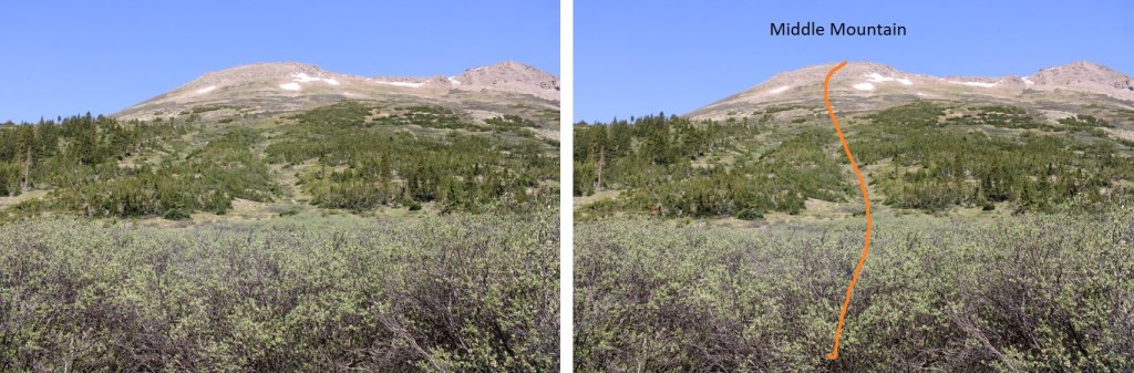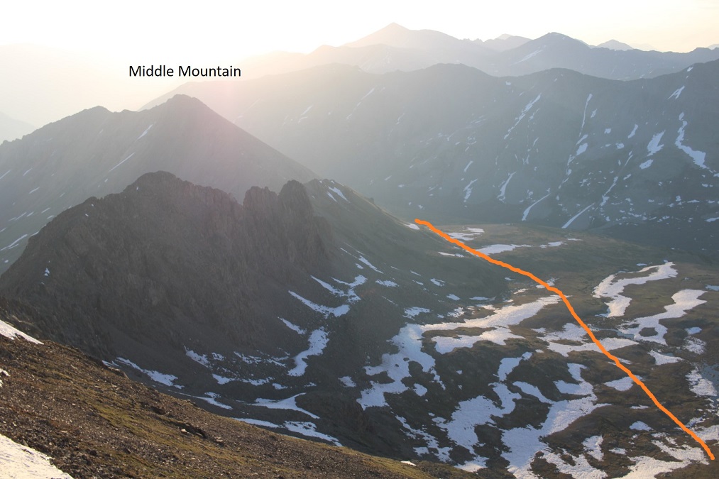 From the lower basin, here’s looking at the route I took down from Middle Mountain