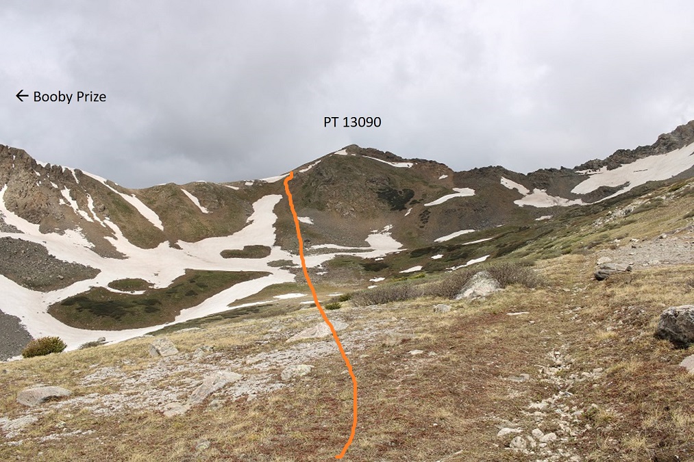 I downclimbed, and headed back to PT 13090. Even though it’s not ranked, I summited it, just because I was there