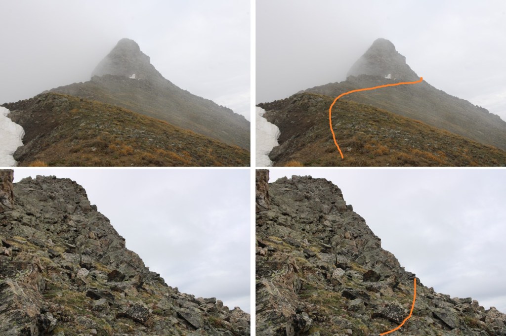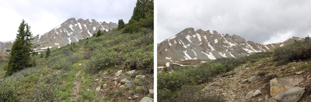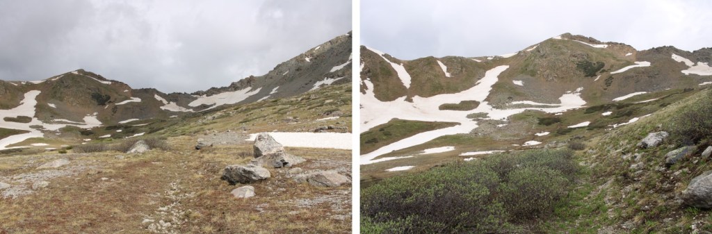 When I made it to the upper basin, I knew I wanted to gain the ridge. I also knew, from yesterday’s experience, that I wanted to gain it from the left, and not the right.