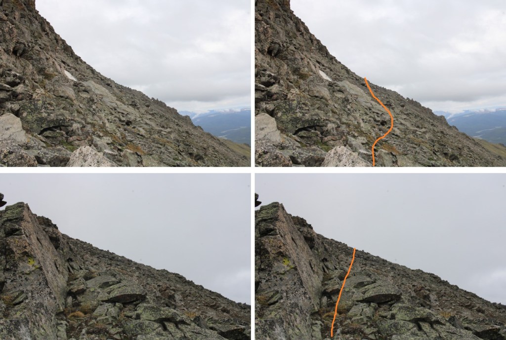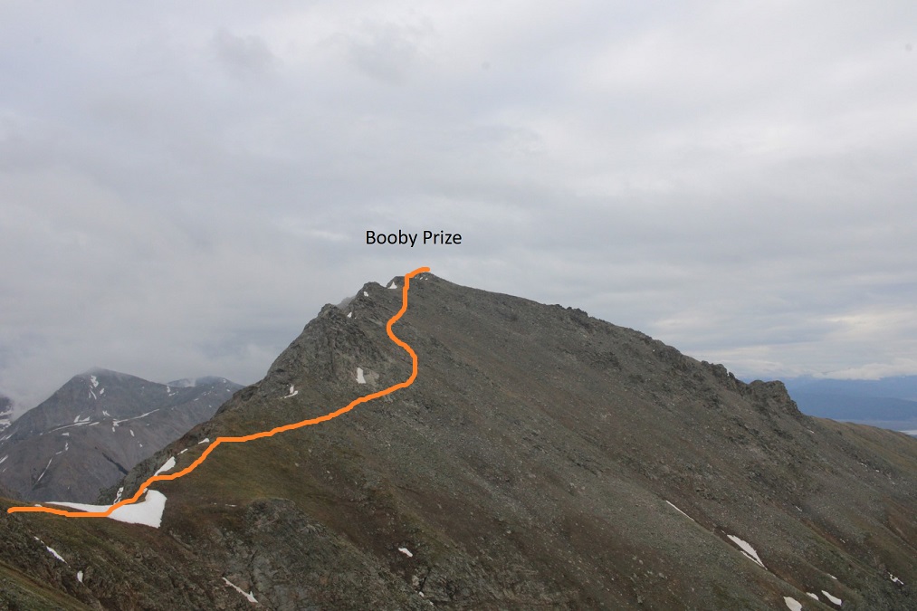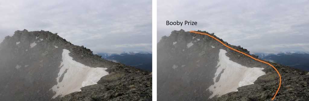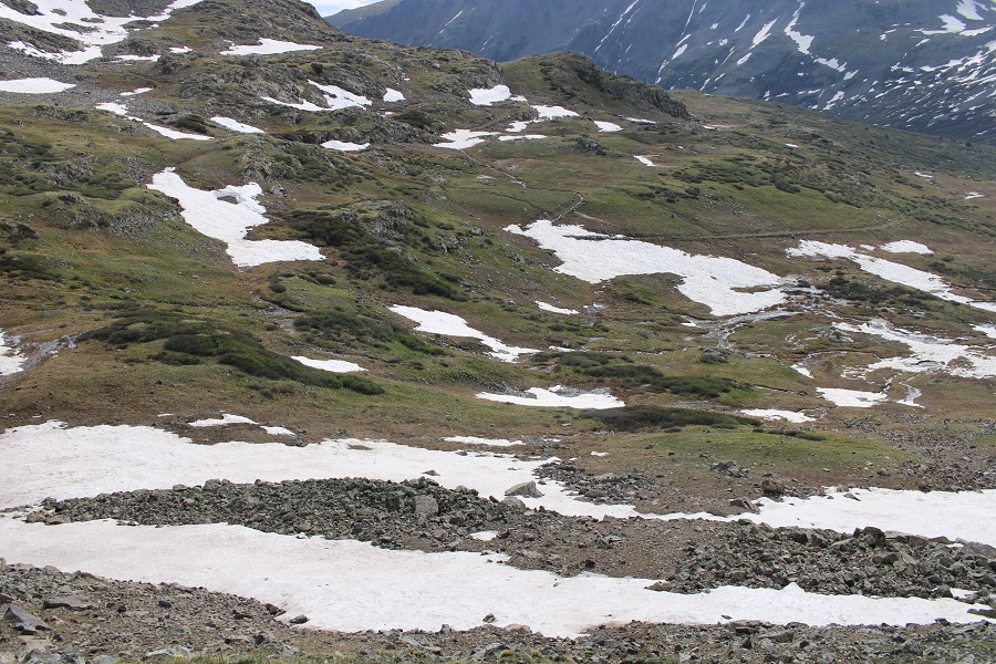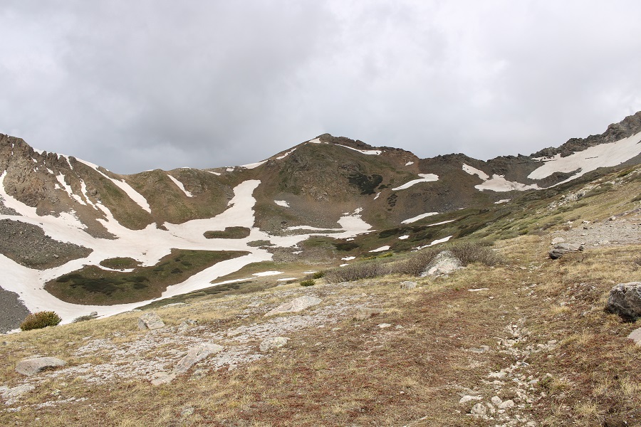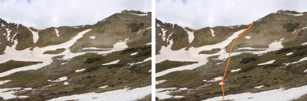 Here’s the overall route I took, avoiding the rock slabs and snow. This was all class 2, with some loose scree/rocks to navigate