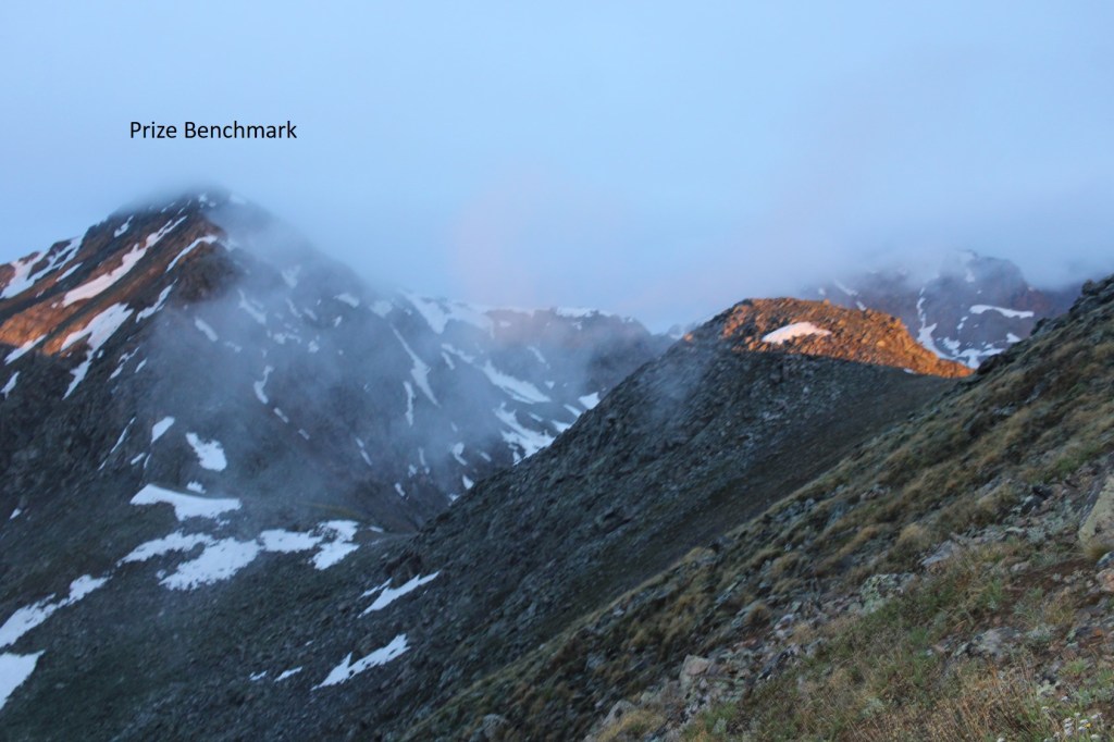 I gained the ridge, and headed over to Prize Benchmark, my first intended peak of the day. As you can see, conditions weren’t ideal: