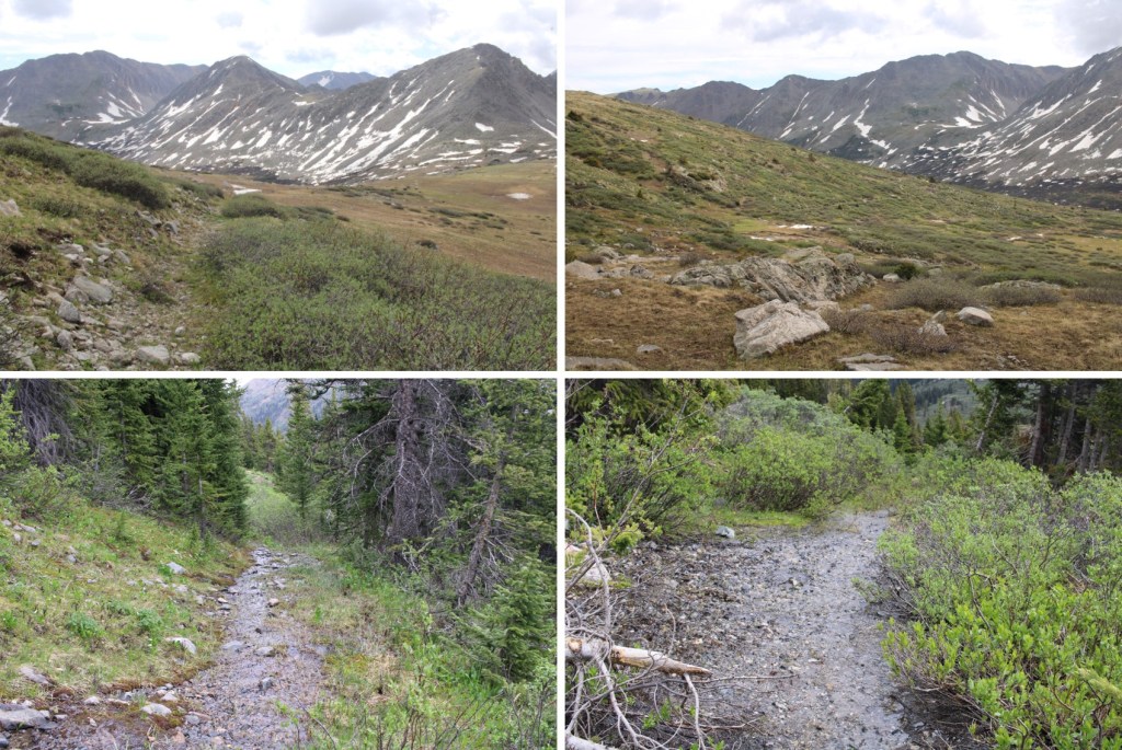As I mentioned earlier, it was raining. I followed a very wet, willow-filled trail all the way into the upper basin. This trail is class 1, but a bit overgrown since it’s early in the hiking season. It was also teeming with water, and bear tracks (although I did not see any bear scat).