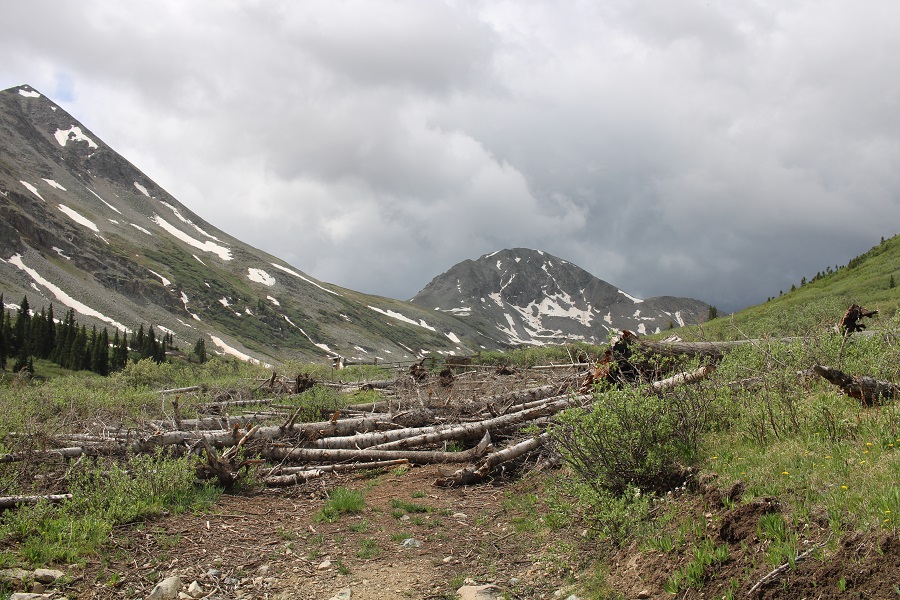 After hiking for .8 miles I made it to the trailhead. Just before reaching the trailhead the road was covered in old avalanche debris.