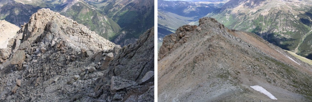 Just before reaching the ridge, I saw another cairn, and what I thought would be the summit of Ellingwood Ride.  This is also not the accepted summit.  DO NOT follow this cairn.
