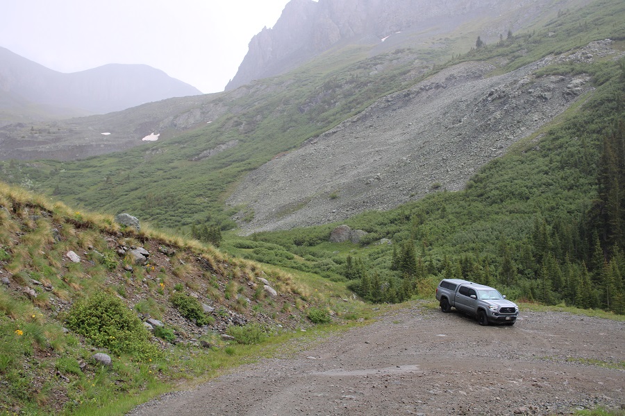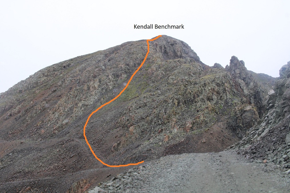 If I’d known Kendall Benchmark was a ranked 13er, I’d have done it Kendall Mountain. However, at the time I was unaware, so I was back in the area to pick this one up.  I didn’t need to allot an entire day for this hike, so I decided to do it the night before I did the rest of the Kendall Group.  I arrived at Kendall Gulch (11,700’) at 3pm, and it was raining.  It was only supposed to rain until 3pm, so I didn’t think much of it, put on my rain gear, and was on the trail at 3:20pm.
