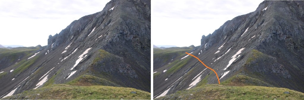 I then turned left again, and followed the tundra southeast towards Mountaineer Peak