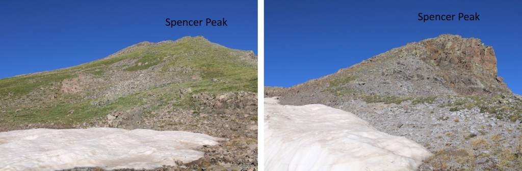 Once safely on tundra, I turned right and headed west up to the summit of “Spencer Peak” (unranked). This was all class 2. In fact, the entire day was class 2.
