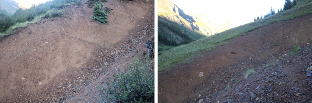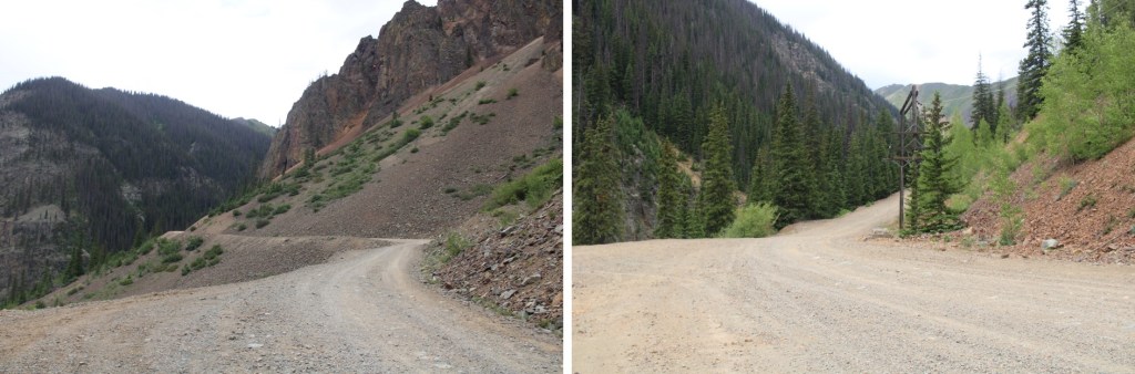We were once again experiencing summer storms, so I was up and on the trail at 4am. I followed the road as it rounded the mountainside, heading west.