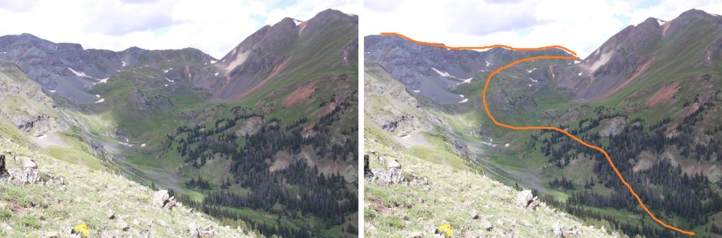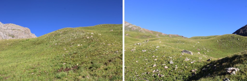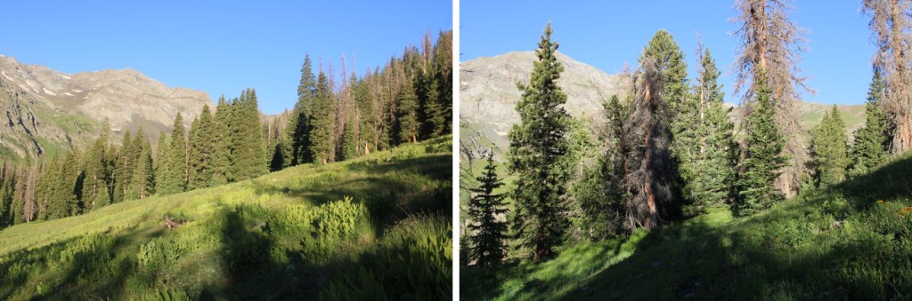 Now at treeline, I needed to access the upper basin. This is how I got there. There were TONS of game trails in the area.