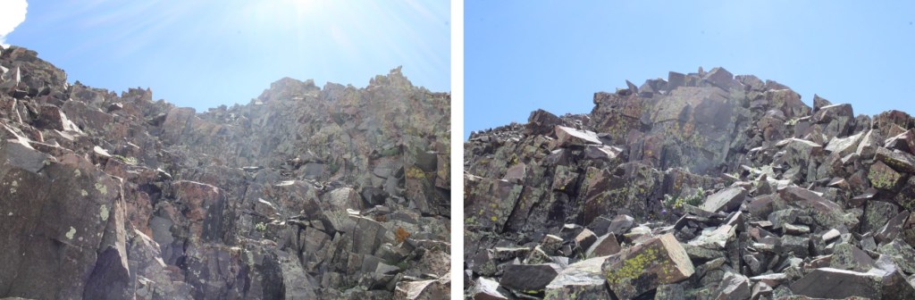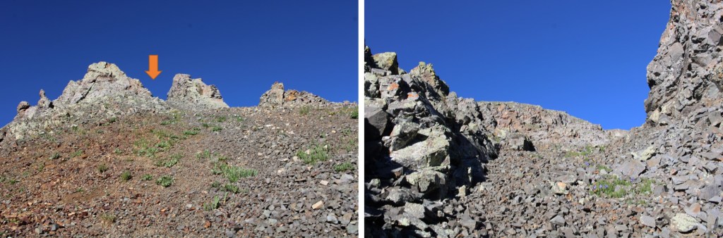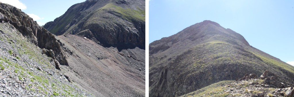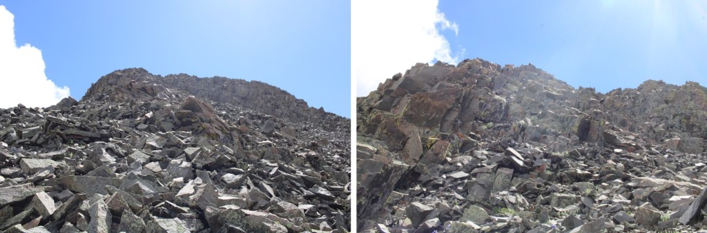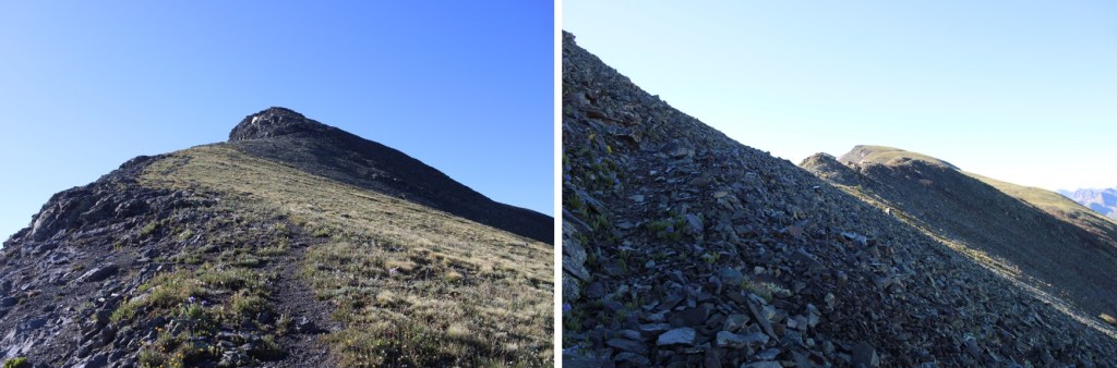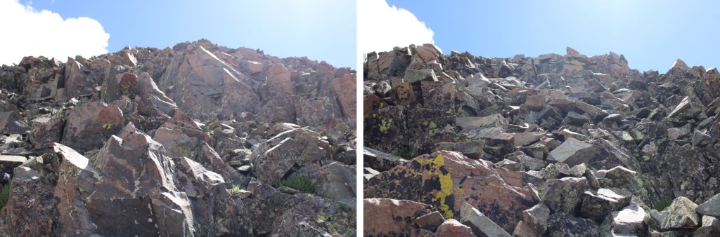 The last 300 feet of climbing is done on very loose rock. Trust nothing. It’s all class 3, but the terrain is rotten. Here are some photos. I continued east, and headed straight along the ridge to the summit.