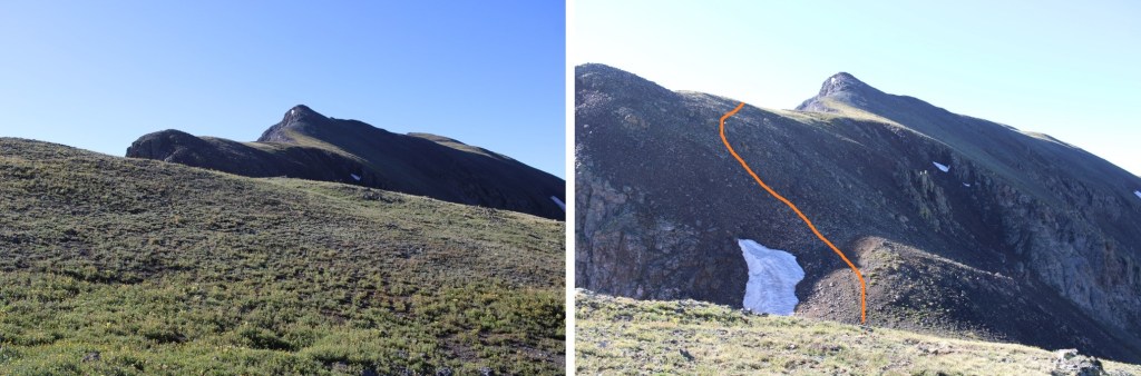 This is where the ‘fun’ begins, and doesn’t end until you’re back on the trail you hiked in on… I left the ridge here, at 13100’, and descended into Cataract Basin, making sure to stay high. No trails here, unless you stumble upon a game trail.