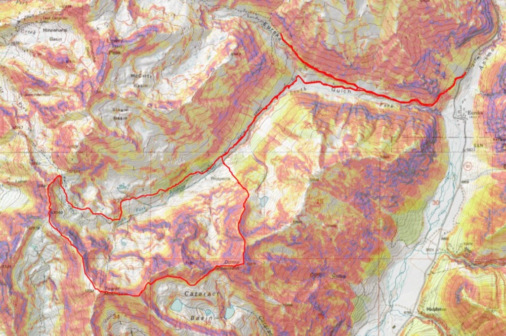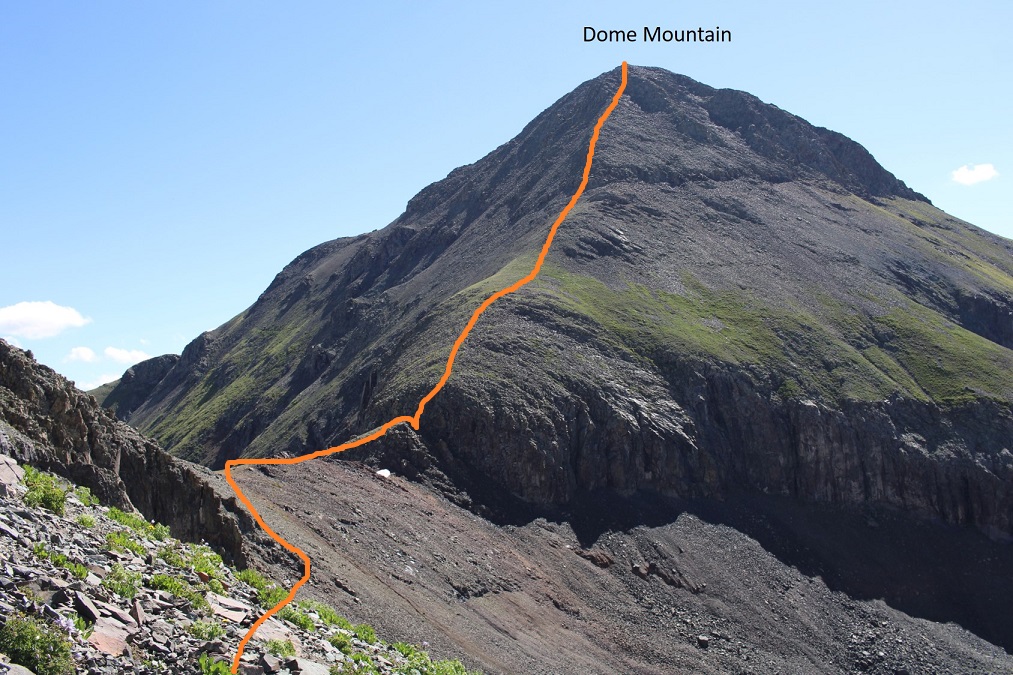 This is my general ascent route up Dome Mountain. I just went straight up the face, heading east. Now is a good time to look at your route.