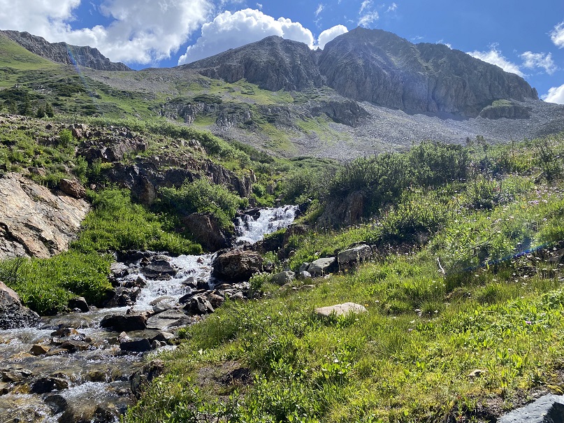 The Rustler Gulch Trailhead was full. I tried to drive up the road several times, but kept getting greeted by vehicles coming down. The drivers didn’t understand up had the right of way, and all of them seemed to be in vehicles too big for them to maneuver. After backing up over half a mile for the third time, I decided to just park below. I’d find out the next day it’s peak wildflower season in Rustler Gulch, and the tourists were flooding in to see them. Parking down below added about 2 miles to my trip and 500’ of elevation gain, which was negligible. Bonus: There was a creek behind me to enjoy as well.