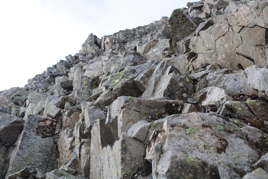 At the base of the gully I put on my microspikes and started climbing. This is choose your own adventure of 850’ of elevation gain. This felt class 2+. I’ve definitely been in worse gullies, but still be sure of every step. I didn’t have any rocks fall down the gully, but I did make a few slide a few feet. It had rained the night before, so the scree was mushy and easy to grip.
