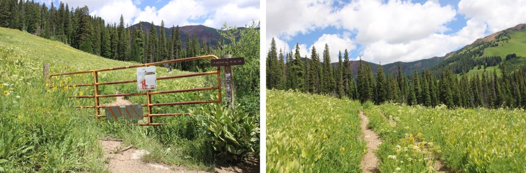 I passed around the gate, and followed Rustler Gulch trail #599 north into the gulch.