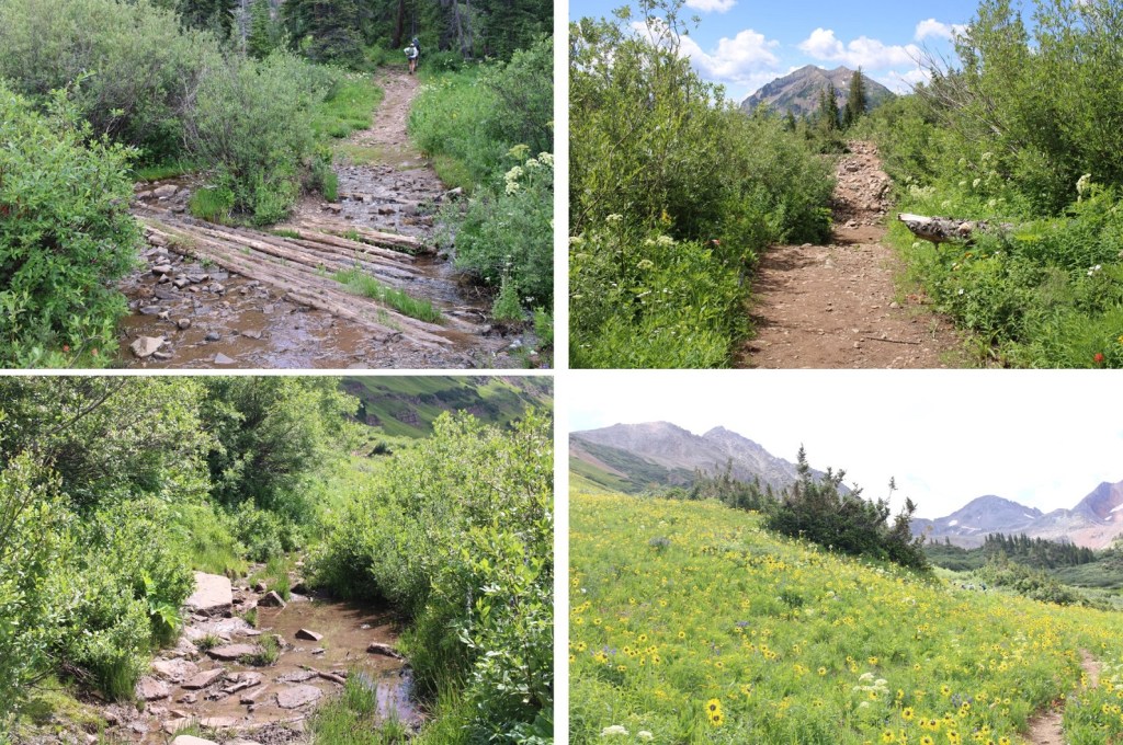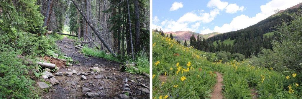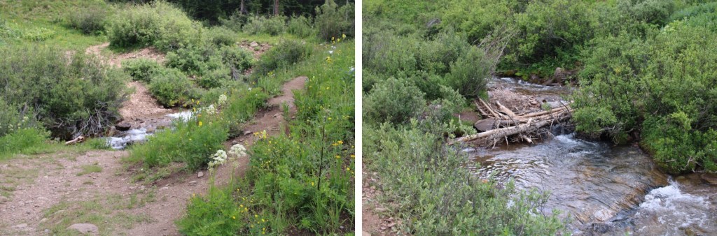I continued following the trail, and crossing creeks, through the gulch on a well-marked trail